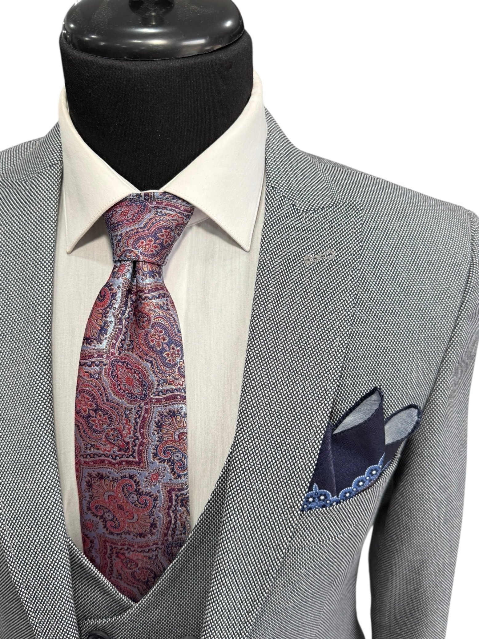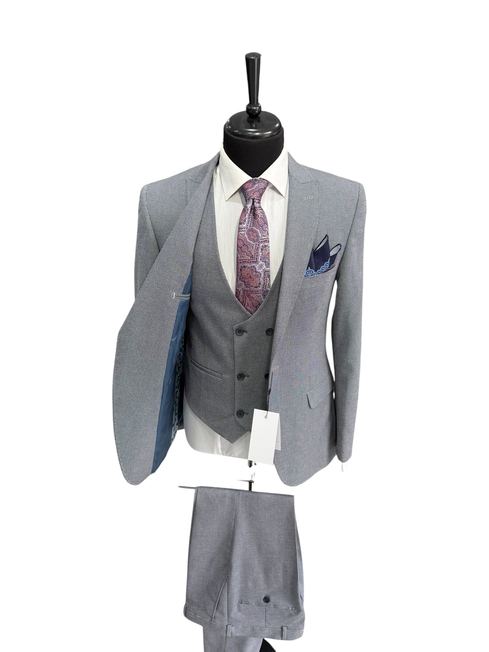 Costumul bărbătesc Amalfi slim fit este alegerea ideală pentru bărbatul care își dorește un look elegant, modern și versatil. Croiala slim fit pune în valoare silueta, iar nuanța gri cu textură discretă oferă un aer rafinat și actual, potrivit pentru orice moment al zilei.
